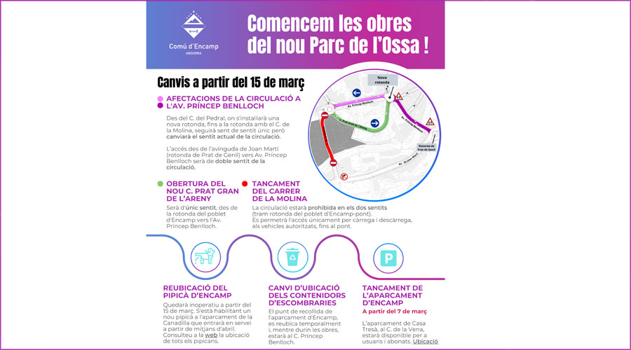 Adaptacions de la circulació a Encamp per l’inici de les obres del nou Parc de l’Ossa