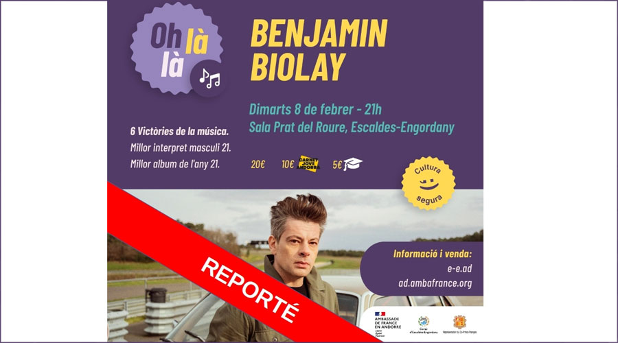El concert de Benjamin Biolay, proposat per l’Ambaixada de França al Principat d’Andorra i el Comú d’Escaldes-Engordany, s’ha hagut d’ajornar a causa de la situació sanitària.