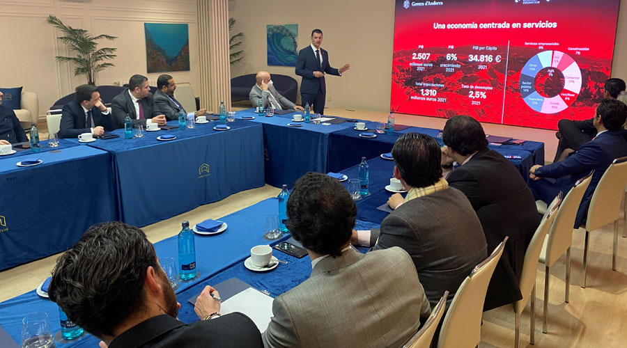 Posteriorment, Gallardo i Hidalgo han presentat els darrers projectes del país en una trobada empresarial que ha tingut lloc a l’Uppery Club Màlaga, un club que reuneix alguns dels 300 inversors més importants de la Costa del Sol. El ministre ha exposat el model econòmic i de diversificació d’Andorra, i les oportunitats d´inversió, negoci i desenvolupament empresarial, en una sala que s’ha omplert d’inversors de la branca financera, la sostenibilitat i les noves tecnologies, entre d’altres. A més s’han demanat reunions bilaterals amb Andorra Business.