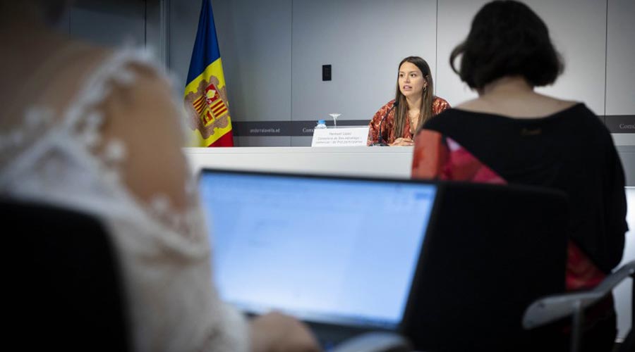 La consellera, Meritxell López, durant la roda de premsa (Comú d’Andorra la Vella)