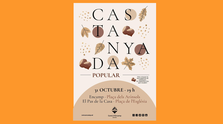Encamp i el Pas de la Casa celebraran un any més la tradicional Castanyada el proper dilluns 31 d’octubre. Ho faran repartint paperines de castanyes fins a acabar existències. Les castanyes es repartiran a partir de les 19 hores a la plaça dels Arínsols d’Encamp i a la plaça de l’Església del Pas de la Casa.