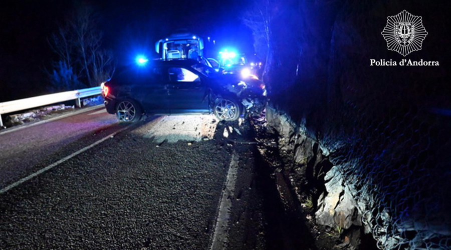A primera hora del matí, un turista de 20 anys va ser detingut amb un positiu d’1,70 després d’haver tingut un accident de danys materials en què va col·lidir amb un mur de la carretera d’Engolasters, a la parròquia d’Escaldes-Engordany.
