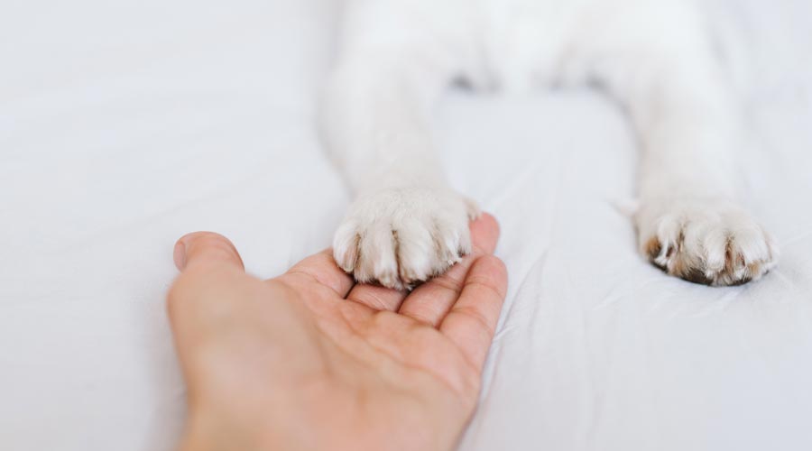 D’acord amb l’ASPCA, un massatge en les potes farà que el teu gos es relaxi, a més d’estimular la circulació. Frega entre els coixinets i entre cada dit.