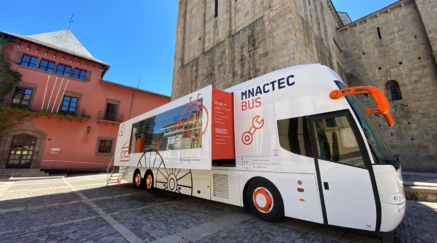 La plaça dels Oms de la Seu d’Urgell acull fins aquest divendres el MNACTEC Bus, un espai que convida el públic a viatjar al passat, el present i el futur de la societat, a través de temes com els avanços tecnològics, la transició energètica, la cultura, el transport o el patrimoni industrial.