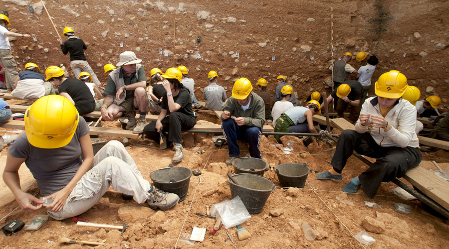 Al fons, Eudald Carbonell, investigador de l’IPHES, amb el seu inconfusible barret en una de les seves recerques (IPHES-CERCA)