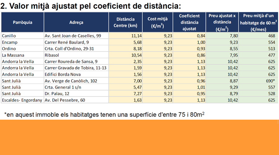 Les dades del preu assequible per metre quadrat i per parròquia, així com el lloguer assequible mitjà d’un habitatge de 60 metres quadrats, segons la seva ubicació, són les següents: