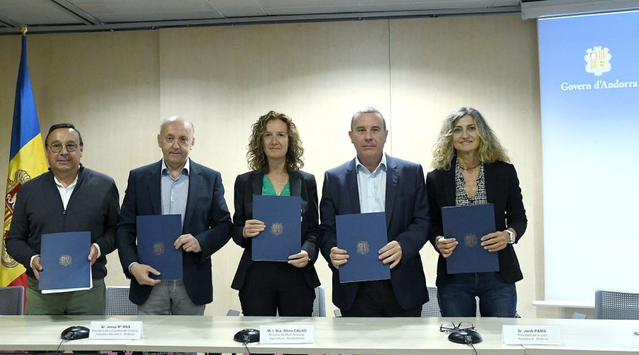 La ministra de Medi Ambient, Agricultura i Sostenibilitat, Silvia Calvó, ha signat aquest dimarts un conveni de col·laboració per a l’impuls de l’estalvi energètic en el sector empresarial. La signatura s’ha fet amb la Cambra de Comerç, Indústria i Serveis d’Andorra (CCIS), la Confederació Empresarial Andorrana (CEA), Unió Hotelera (UHA), Autèntics Hotels (AH) i l’Associació d’Empreses d’Allotjaments Turístics (AEAT) i té per objectiu assolir un estalvi energètic durant els mesos vinents i posar la base sòlida necessària per a una gestió racional i sostenible de l’energia i l’impuls d’un model energètic sobri.