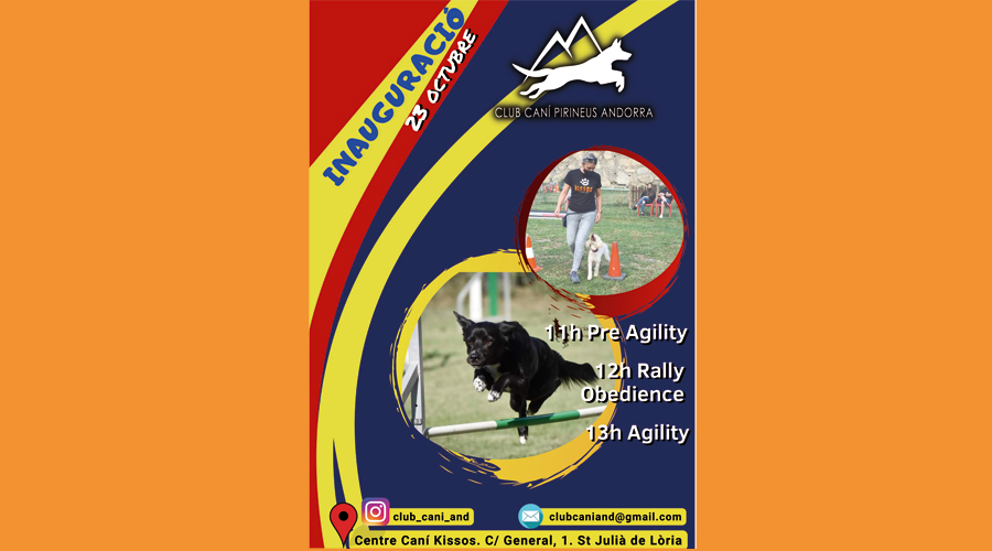 El Club Caní Pirineus Andorra s’inaugurarà aquest diumenge, dia 23 d’octubre. Serà al terreny del Centre Caní Kissos, a la carretera general número 1, a Sant Julià de Lòria. En l’esdeveniment, a les 11 hores, hi haurà una demostració Pre Agility i, a les 12 hores, una exhibició de rally Obedience.