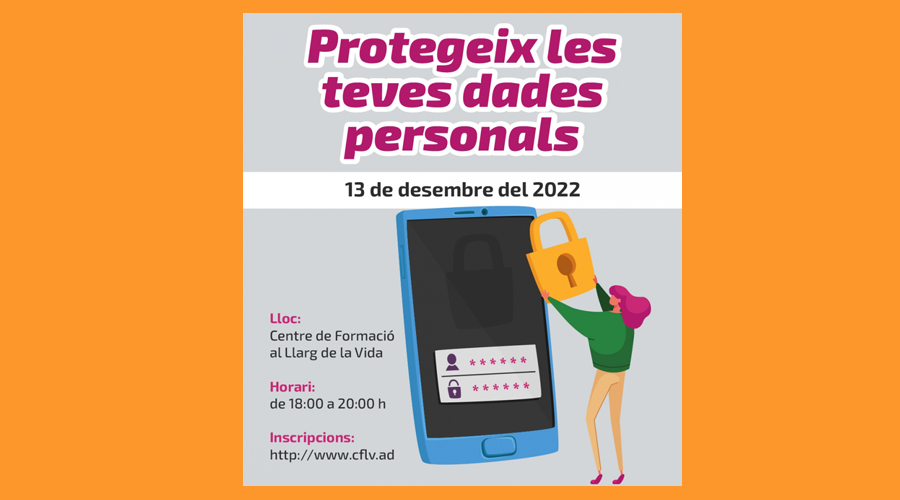 El ministeri d’Educació i Ensenyament Superior, a través del Centre de Formació al Llarg de la Vida, organitza la píndola formativa Protegeix les teves dades personals. Serà el dia 13 de desembre de 18:00 a 20:00 hores.