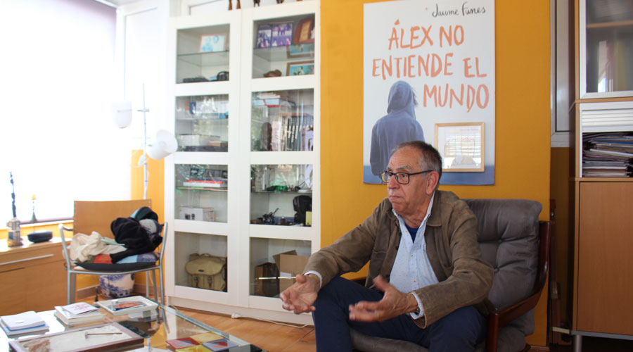 Ens trobem amb l’autor de Quan la vida ens dol a casa seva, concretament al seu estudi, un espai molt lluminós, amb vistes a Cornellà del Llobregat i ple de quadres. Unes pintures que, com ell mateix explica, va començar a pintar quan sentia que les neurones li fallaven i necessitava distanciar-se de les paraules i els llibres. Amb l’excusa dels quadres comencem a parlar de les emocions i les relacions socials, les quals, així com els colors dels quadres impressionistes, només cobren sentit quan es posen un al costat de l’altre i es miren amb distància.