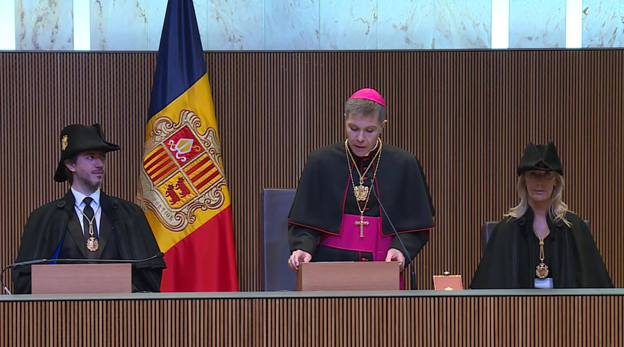 Carles Ensenyat ha adreçat unes paraules de salutació i a continuació, Mons. Serrano ha jurat d’exercir les funcions de copríncep, d’acord amb la Constitució andorrana. El Síndic li ha lliurat la medalla institucional al copríncep i, aquest, ha fet un parlament de salutació.