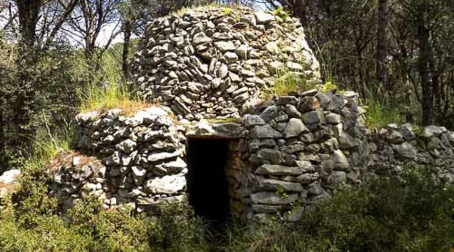Agafem un breu tram d’anada i tornada per anar a admirar la barraca dels Hereus, una de les més ben conservades del massís, destinada a aixopluc i, si convé, com a lloc de pernoctació temporal, en èpoques de molta feina als camps.