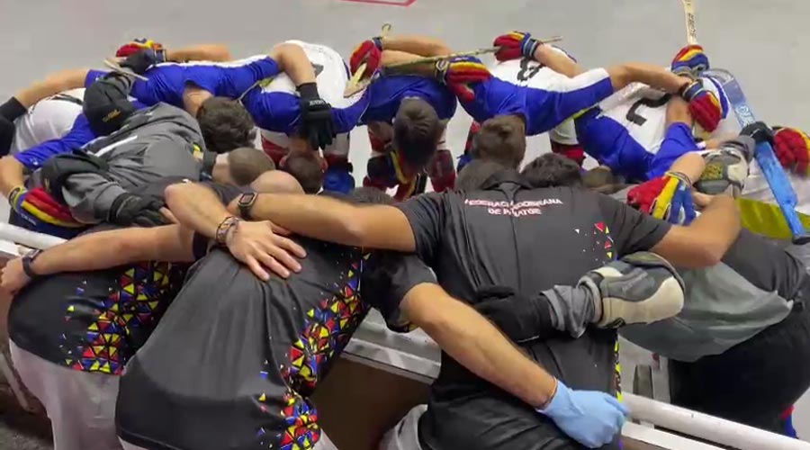 La selecció nacional d’hoquei patins fent pinya (AndorraDifusió)