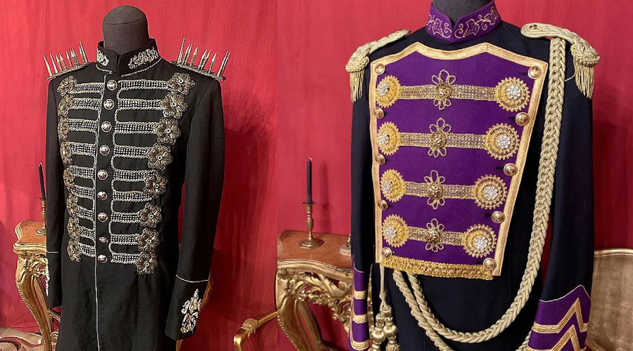 Quant a la idea de dissenyar i confeccionar el seu vestuari, el Lluc ens explica que ja des de ben petit li agradaven els uniformes i es fixava en la roba i complements que portaven els seus Playmobil romans, però no és fins a l’any 2020, durant els mesos de quarantena per la Covid-19, que fa la primera jaqueta amb una americana antiga i quatre brillants que troba per casa.