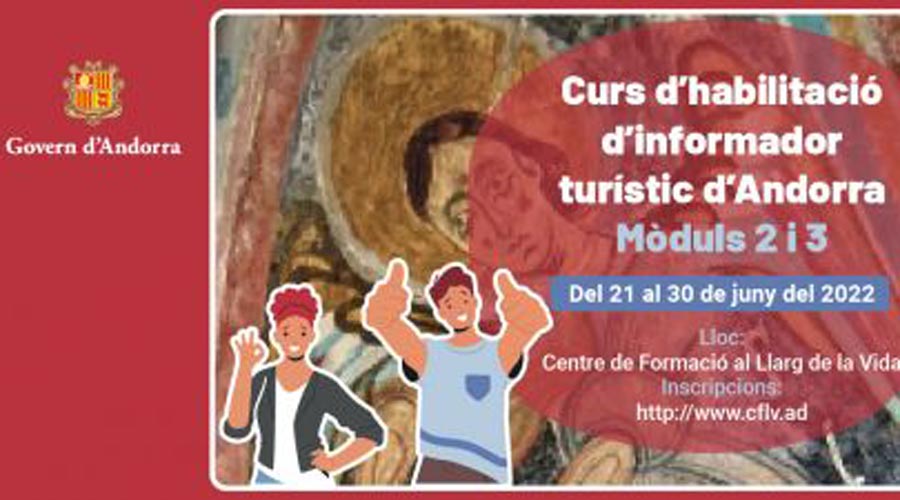 La totalitat dels vuit mòduls que componen el curs d’habilitació d’informador turístic d’Andorra s’ofereixen durant el mes de novembre de cada any. Aquest juny, per contra, s’ofereixen únicament els mòduls 2 i 3, que se centren en el turisme al Principat i en el seu patrimoni cultural. La inscripció es pot fer fins el 16 de juny al web http://www.cflv.ad/