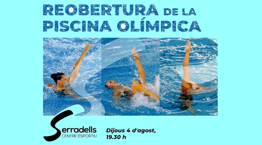 Aquest dijous 4 d’agost, a les 19:30 hores, com a preàmbul de l’inici de la festa major d’Andorra la Vella, el Comú celebrarà un acte institucional obert, amb reserva prèvia, per a la reestrena del Centre esportiu dels Serradells. L’esdeveniment tindrà lloc a la renovada piscina olímpica i comptarà amb números aquàtics a càrrec de Gemma Mengual, i del duo mixt format per Emma Garcia i Pau Ribes.