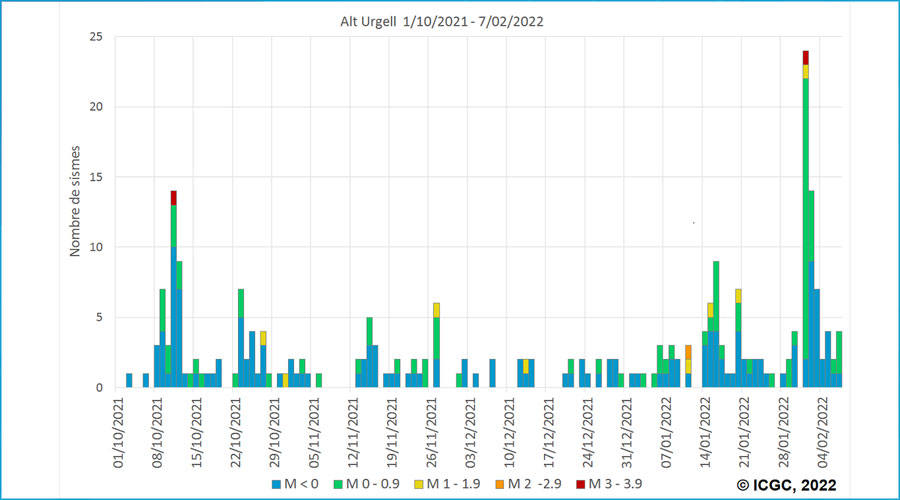 L’Institut Cartogràfic i Geològic de Catalunya ha detectat més de 50 rèpliques del terratrèmol de magnitud 3,8 a l’escala de Richter que hi va haver la setmana passada -dimarts 1 de febrer- al nord de l’Alt Urgell, a tocar de la frontera amb Andorra. Tot i això, els següents sismes han estat de menor intensitat i molt menys percebuts per la població, atès que en general han tingut una magnitud d’entre 0 i 3.