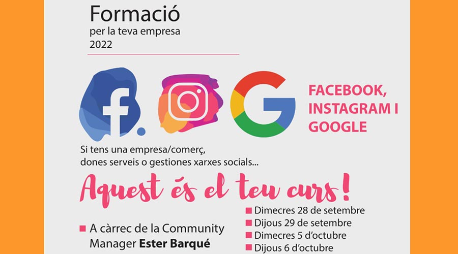 Aquesta nova formació, que s’adreça al comerç tant de la Seu d’Urgell com de la comarca, constarà de 8 hores repartides en 4 sessions sobre Facebook, Instagram, i Google per a l’empresa, a càrrec de la Community Manager, Ester Barqué.