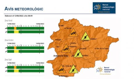 Pronòstic de temps inestable a Andorra. El Servei Meteorològic Nacional ha activat l’avís groc per tempestes a partir d’aquest dimarts a la tarda. Segons detalla, s’apropa una pertorbació que portaLlegir
