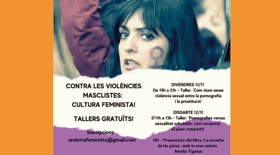 Com a cloenda de les jornades, Acció Feminista d’Andorra ha convidat la supervivent de la prostitució i activista Amelia Tiganus. Amelia Tiganus és una veu referent en la lluita pels drets de les dones i les nenes i presentarà el seu llibre La revuelta de las putas.