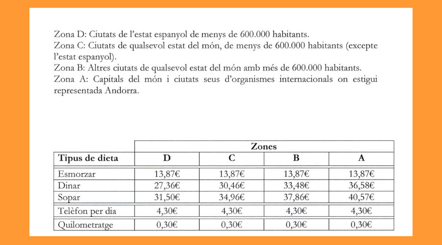 Per tal de justificar els pagaments i per a una major transparència de les dietes es reclamarà la presentació dels tiquets per al seu pagament. D’altra banda, també s’ha decidit que per a aquells consellers generals que no puguin assumir anticipadament les despeses, rebran un avançament del Consell General que posteriorment es regularitzarà amb els tiquets presentats i el salari mensual.