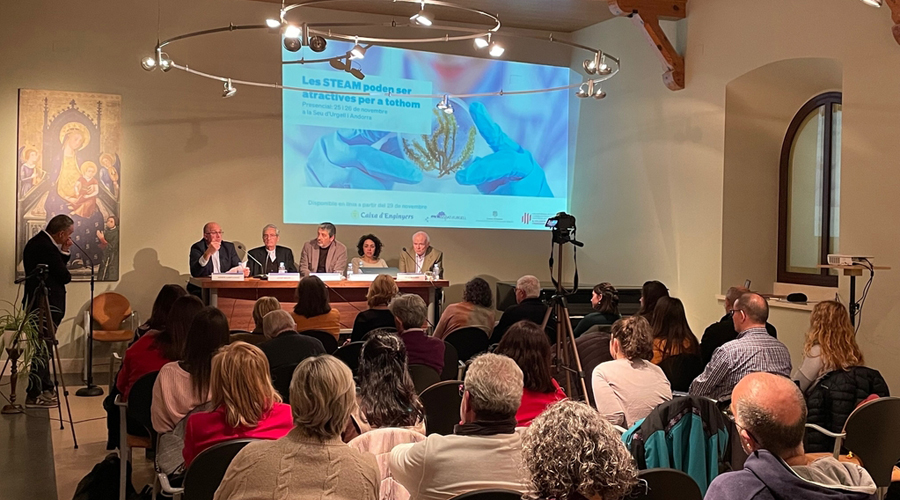 Organitzades pel Col·legi Oficial de Doctors i Llicenciats en Filosofia i Lletres i en Ciències de Catalunya, aquests divendres i dissabte, 25 i 26 de novembre, han tingut lloc les VII Jornades de reflexió educativa amb el tema “les STEAM poden ser atractives per a tothom”. Amb la col·laboració del Bisbat d’Urgell, el Ministeri d’Educació i Ensenyament Superior del Govern Andorrà i la Caixa d’Enginyers de Catalunya.